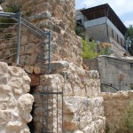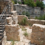 The lower mill, near the wadi, included a well at its northern, more elevated end, and the two-storey mill building, attached to the well from the south. The well had a thick wall one meter wide, and at its center, a channel 30-50 cm. wide, and railings at both ends. Near the well was a reed barrier that filtered the water. The well, round in shape, was 50-70 cm. in diameter, and plastered on the interior in order to prevent leakage. At the center of the mill’s lower level was a large wooden turbine at the height of the narrow opening in the opposing wall, and at its center, a high wooden axle that rose to the upper level of the mill, passing through a bedstone (lower millstone) and attached to a runner stone (upper grindstone). Above the runner stone hung a large, wooden container shaped as an upside-down, hollow pyramid, which enabled a thin stream of wheat berries into the opening, positioned directly over the center of the grindstone. Near the northern wall was a long, wide wooden shaft, whose end was positioned in the wall of the well, under the opening where the wheat berries streamed through. By moving the shaft, one could open or close the opening of the well, and control the water flow. With every rotation of the runner stone, flour would fall into the depression dug out adjacent to it.